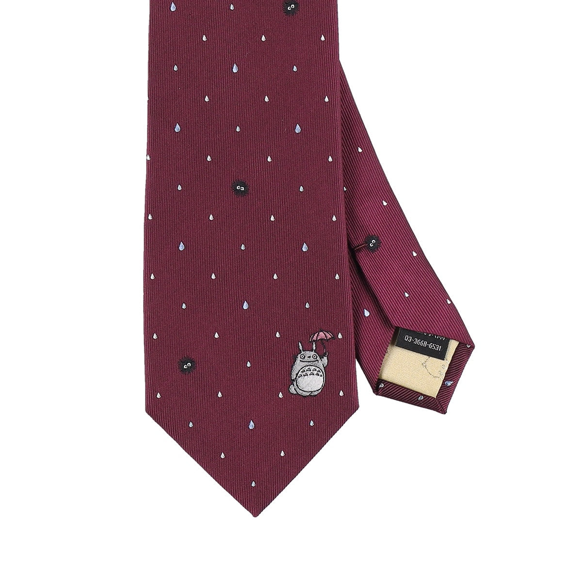This tie features subtle dotted patterns reminiscent of raindrops, along with an embroidered Totoro joyfully holding an umbrella—a charming nod to the iconic rainy scene.